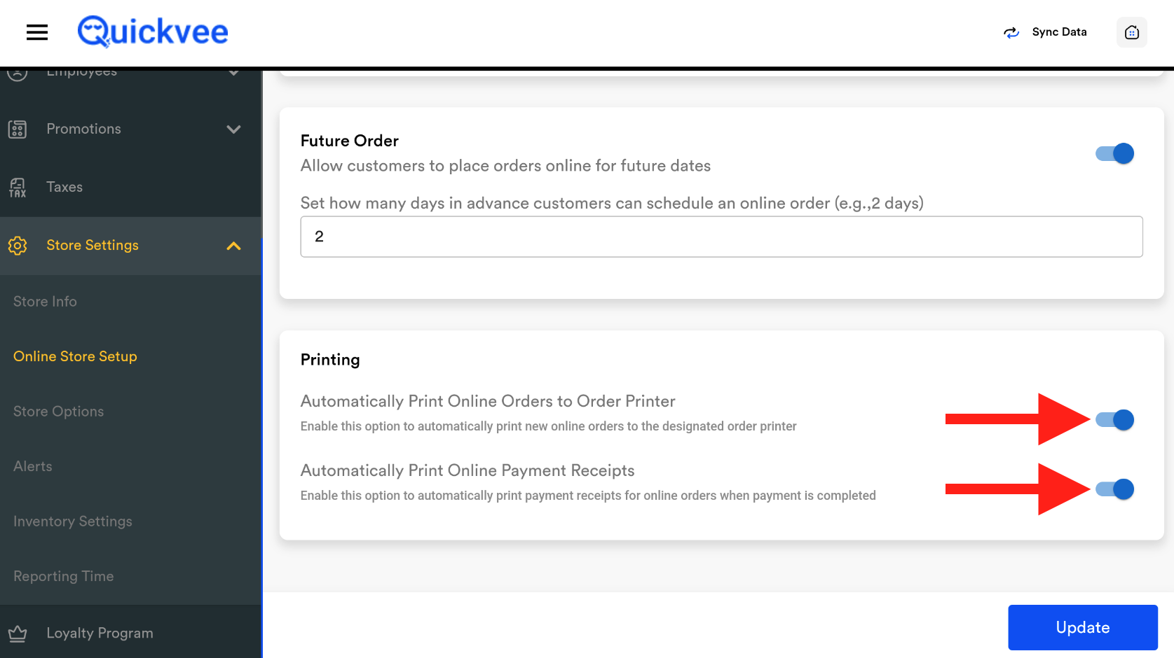 Once enabled, all incoming online orders will automatically be sent to your designated order printer.
