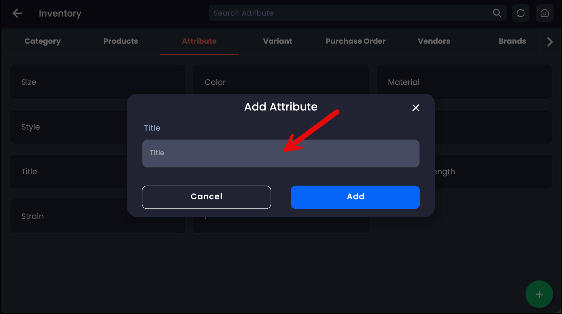 5. Enter the Title of the attribute (e.g., Size, Color, Material, Flavor).
