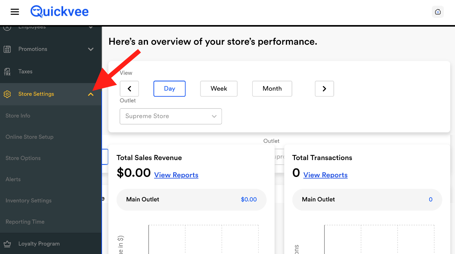 Go to the Quickvee Dashboard from the homepage.