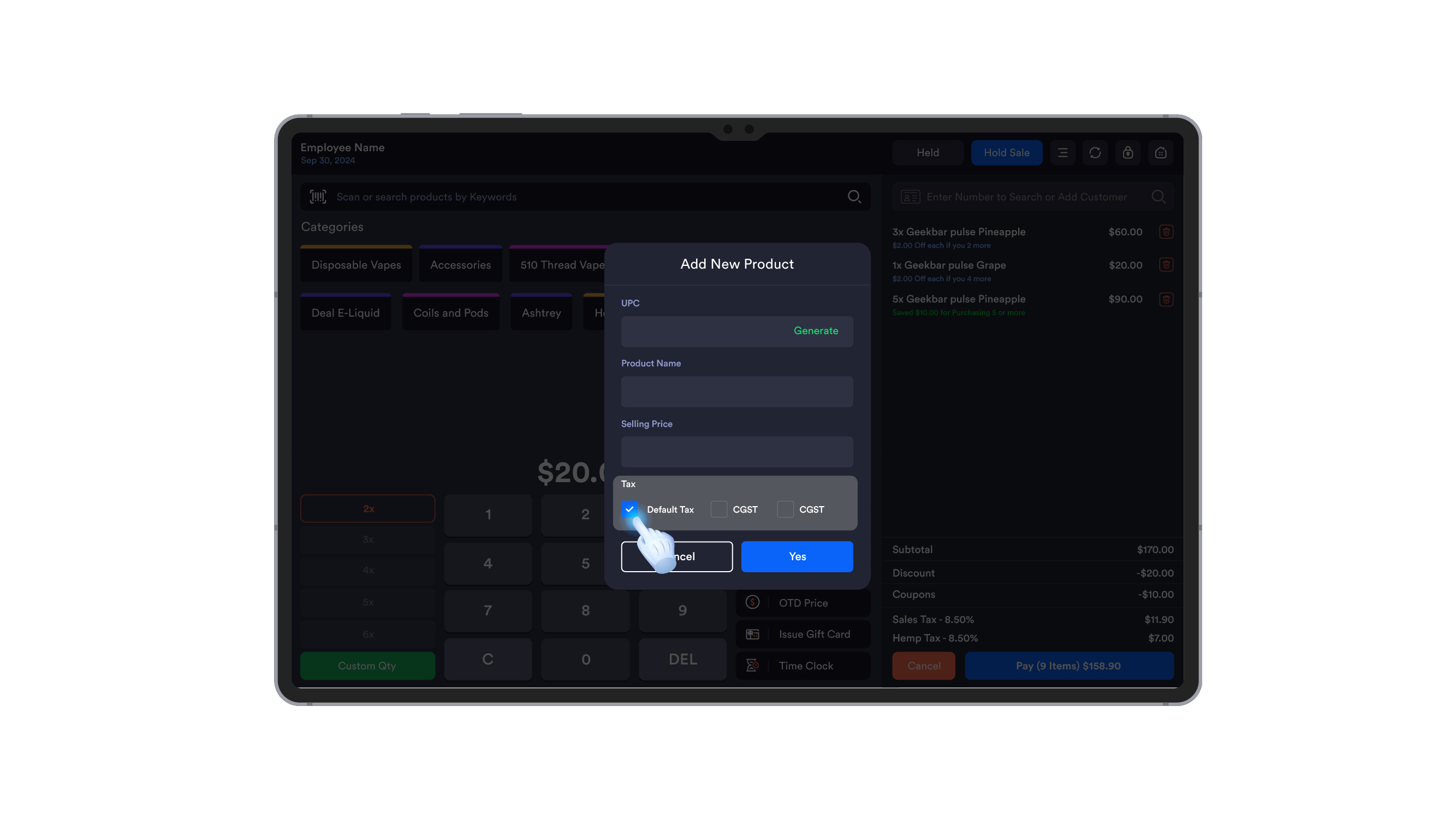 6. UPC: Enter the product's UPC, or tap Generate UPC to let the system automatically create one for you.