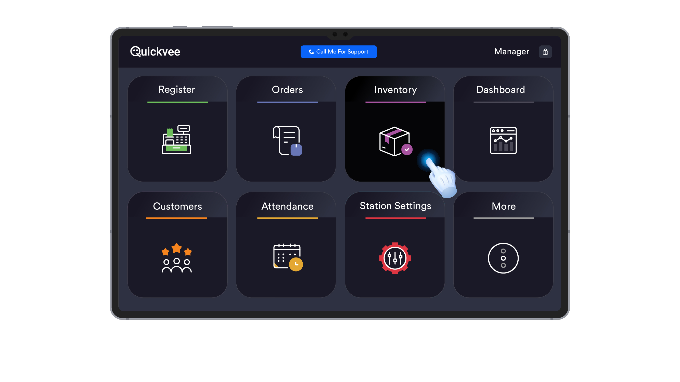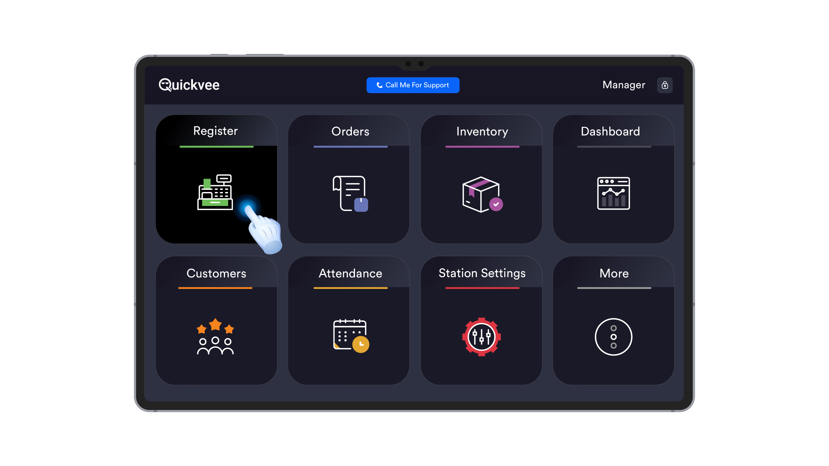 On the Quickvee home screen, tap Register to open the sales screen.