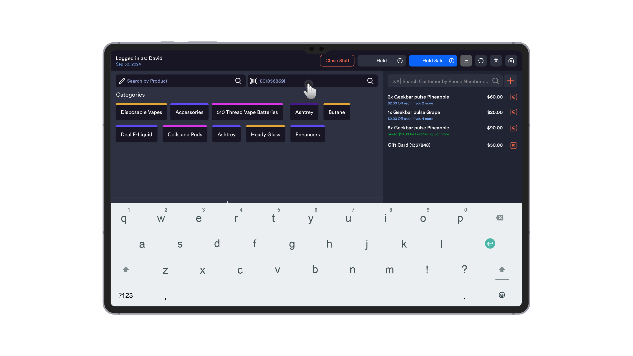 Quickvee allows you to search for products using their UPC or custom code directly in the register. Here's how: