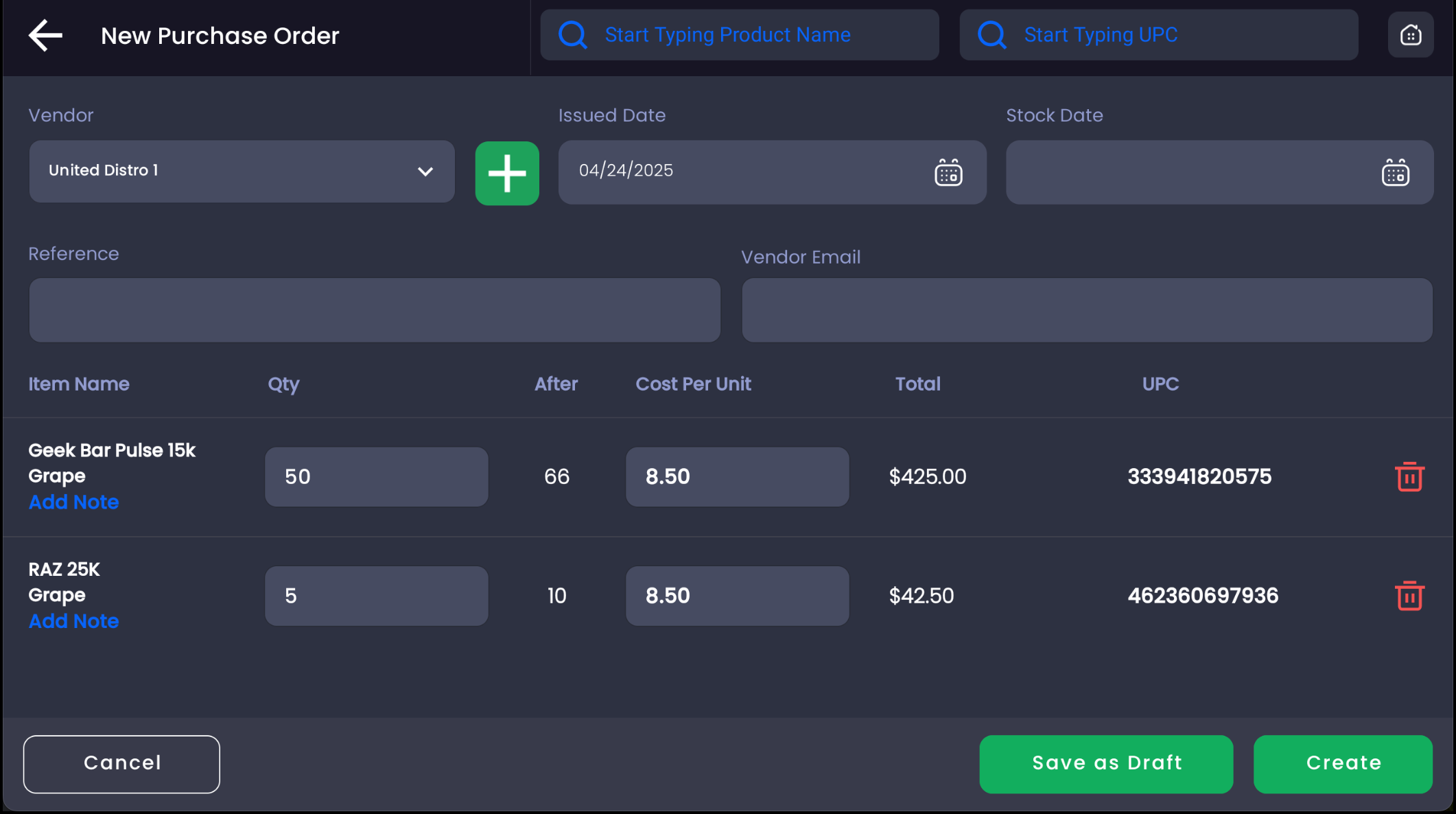Setting up an Auto PO (automatic purchase order) helps streamline your restocking process by pre-setting cost and vendor preferences. This allows Quickvee to generate baseline purchase orders automatically when needed.