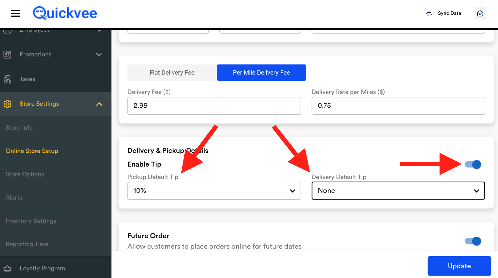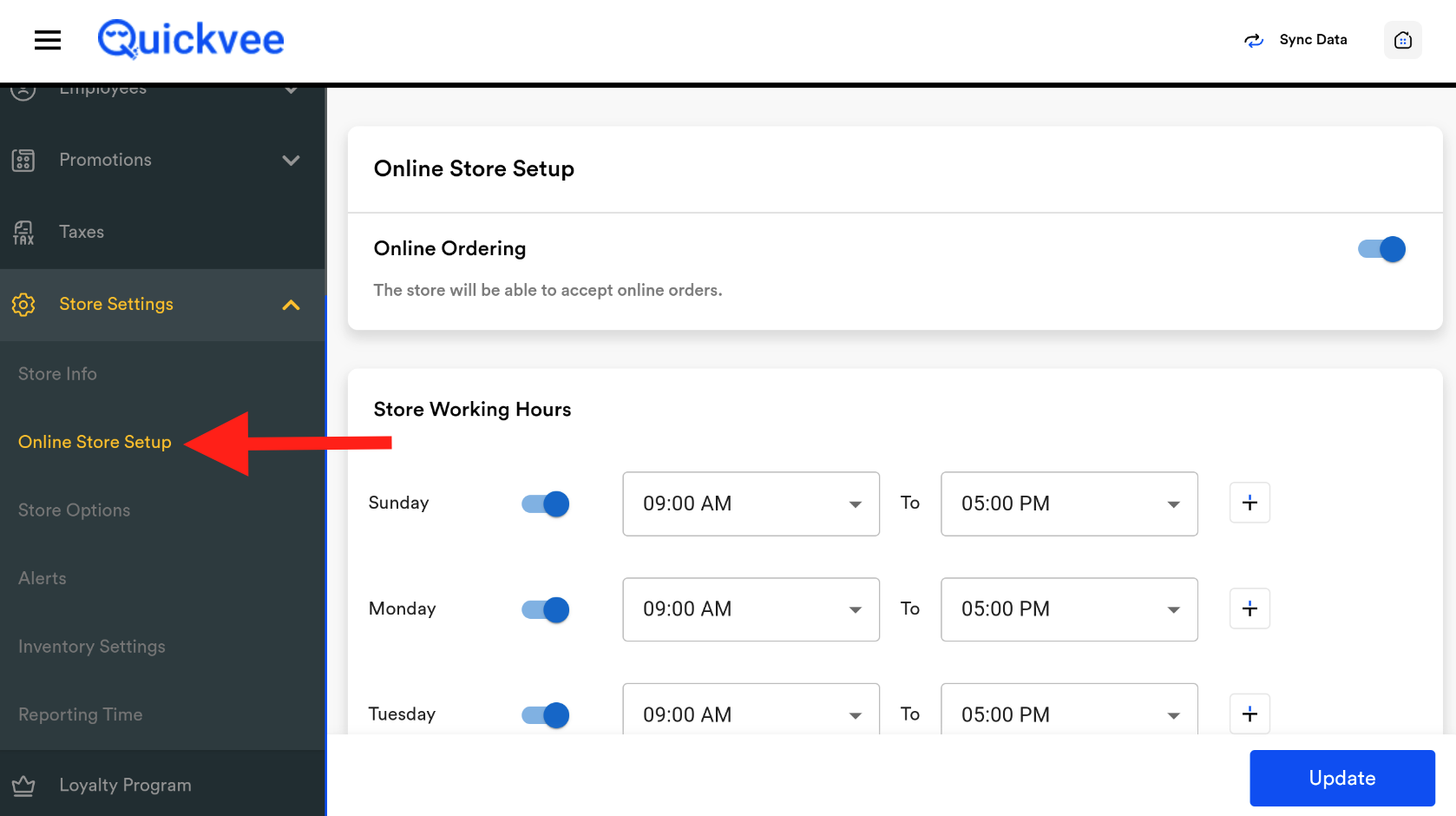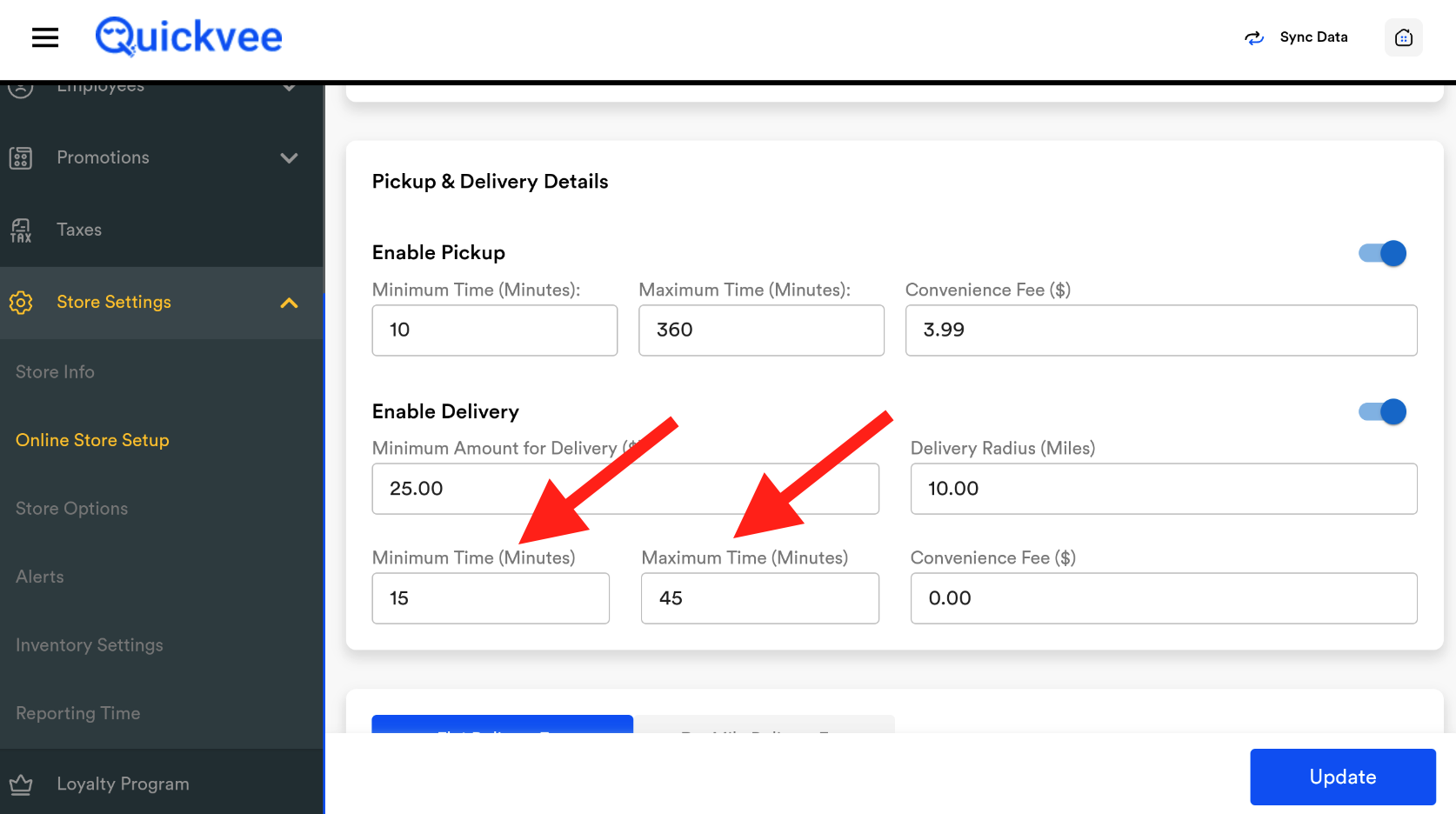 Offering pickup for your Quickvee online store allows customers to conveniently order ahead. Follow these steps to enable and configure pickup options: 1. Navigate to the Quickvee Dashboard from the home screen. 2. Go to Store Settings on the ...