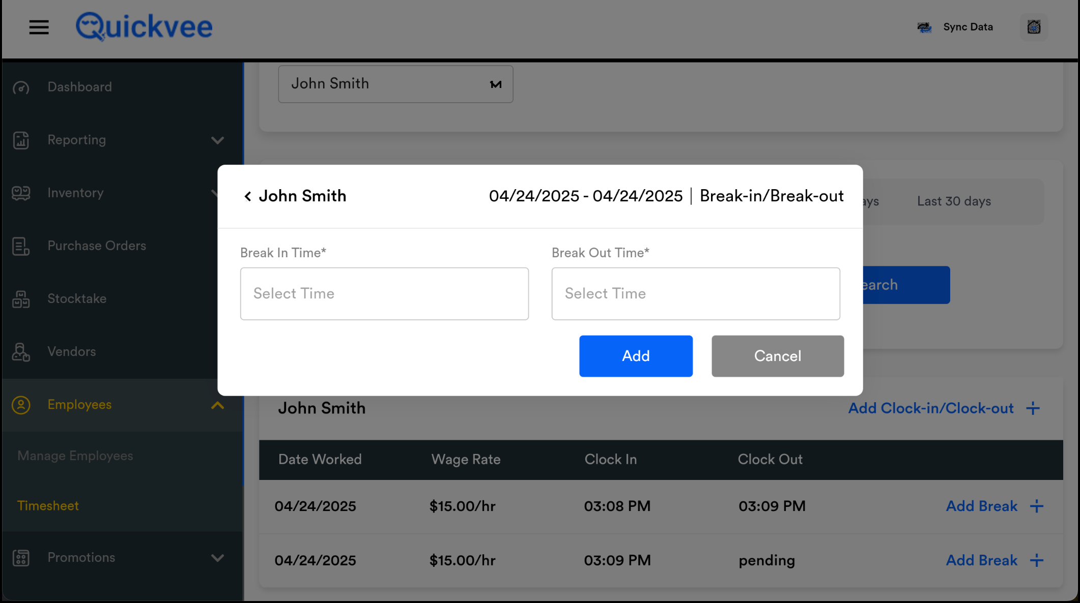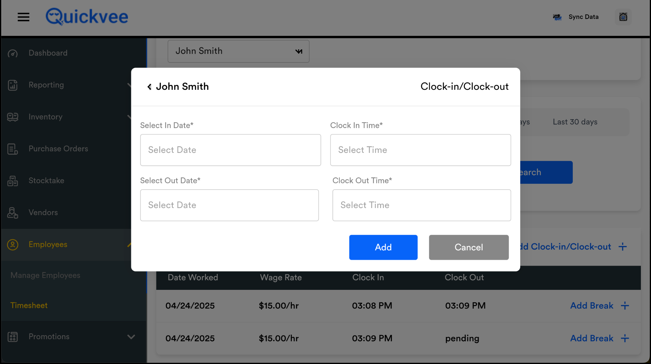 Add Clock-In / Clock-Out