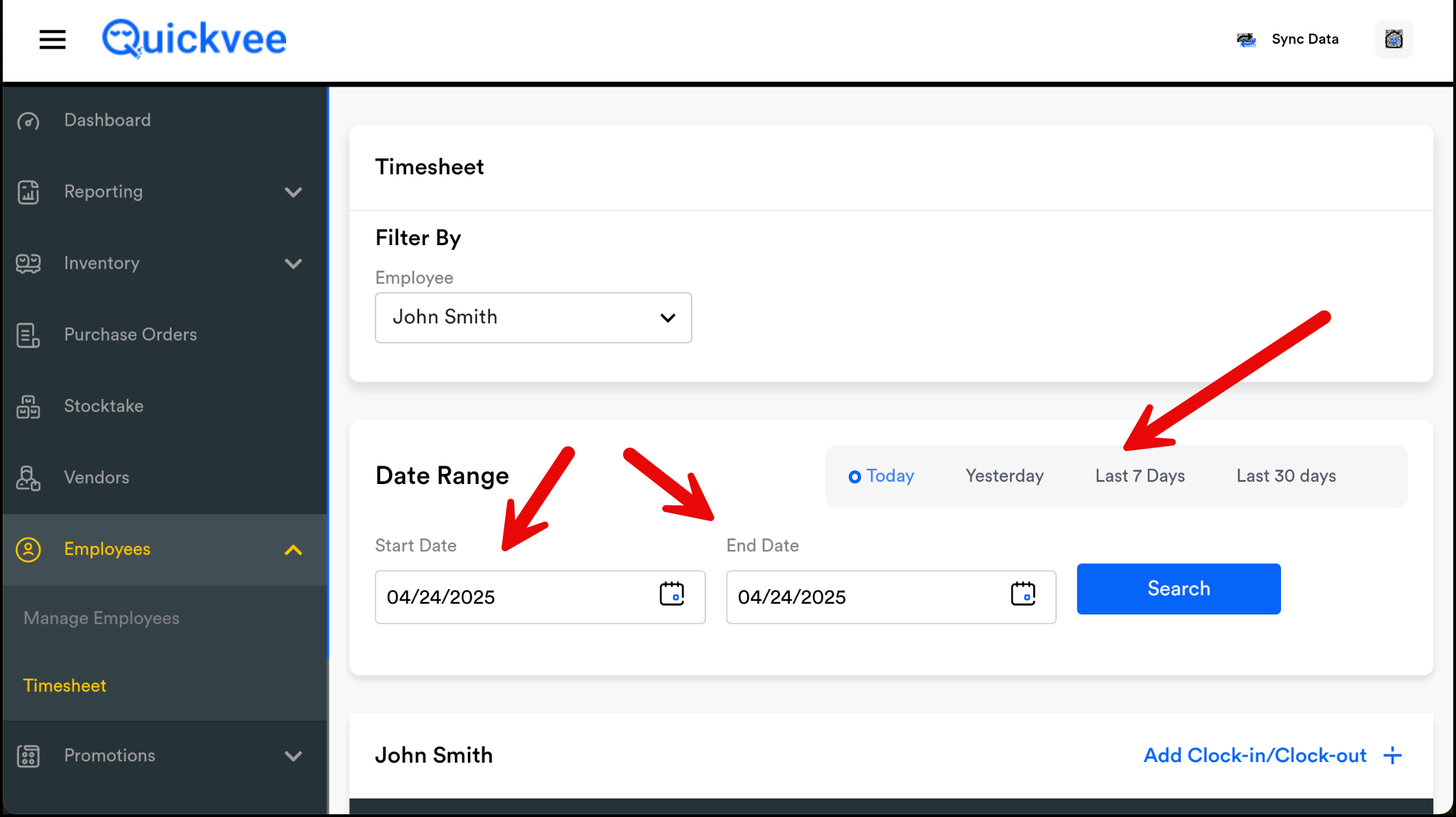 2. Select the Clock-In Date.