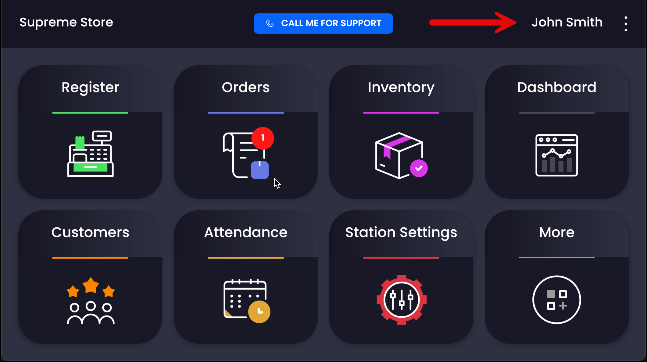 2. Confirm the correct employee is selected — their name will appear in the top right corner.