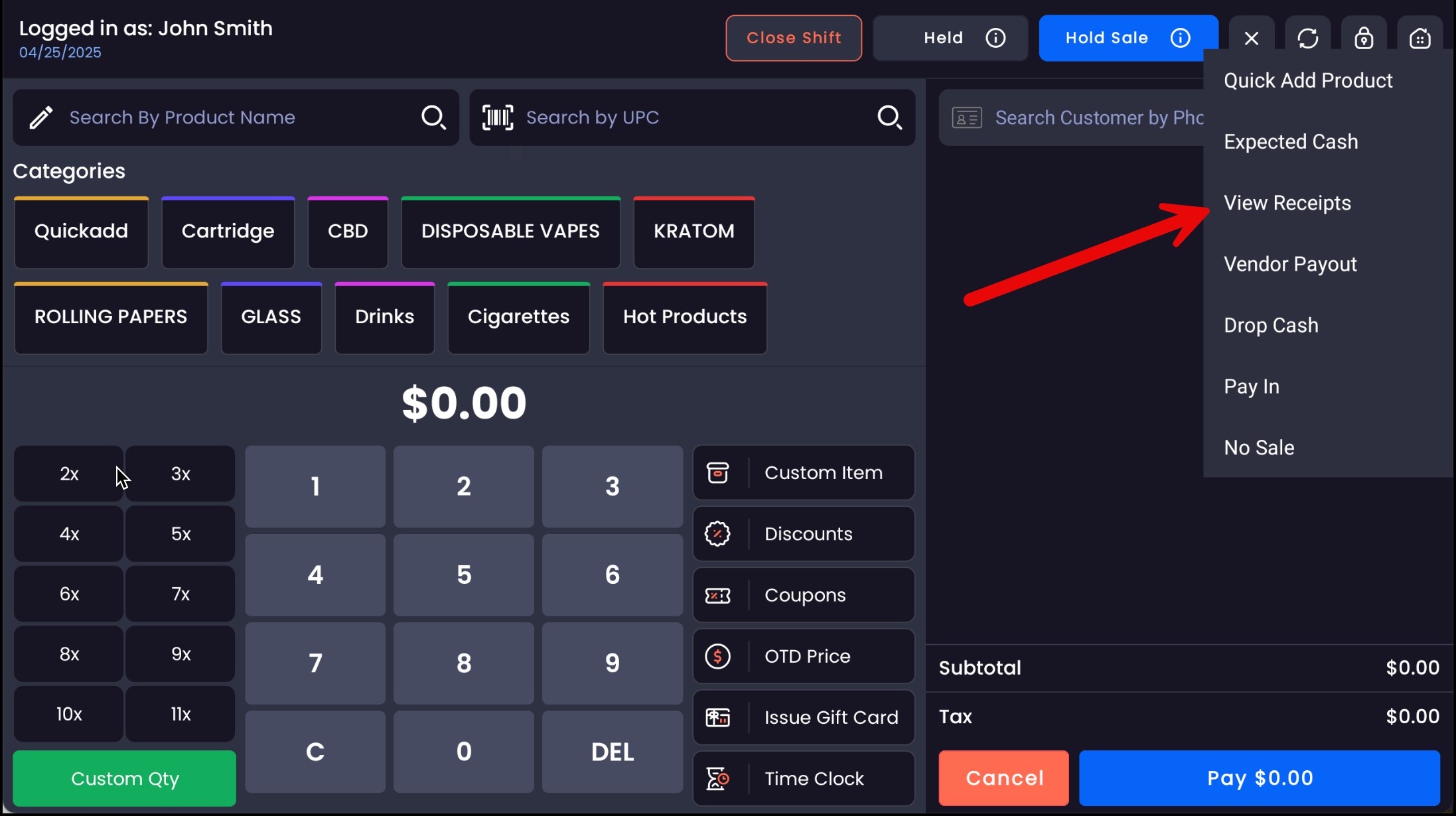 A split payment allows a customer to pay using multiple payment methods in a single transaction. Quickvee supports Cash, Debit, Credit, Cash EBT, Food EBT, Loyalty Points, and Store Credit, all of which can be combined. Step-by-Step Guide A. Start ...